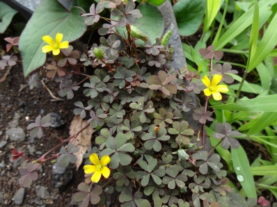 苦悟り雑草ファイル⑨ カタバミとムラサキカタバミカタバミ苦悟り草取り永寿院。