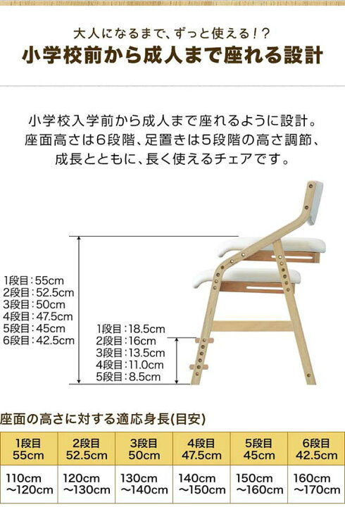 学習椅子 キッズ・子供・中学生・大人・座面高さ33~44cm・高さ確認用目盛り付き・背もたれ高さ2段階・簡単調整DESKN017W激安通販のイーサプライ。