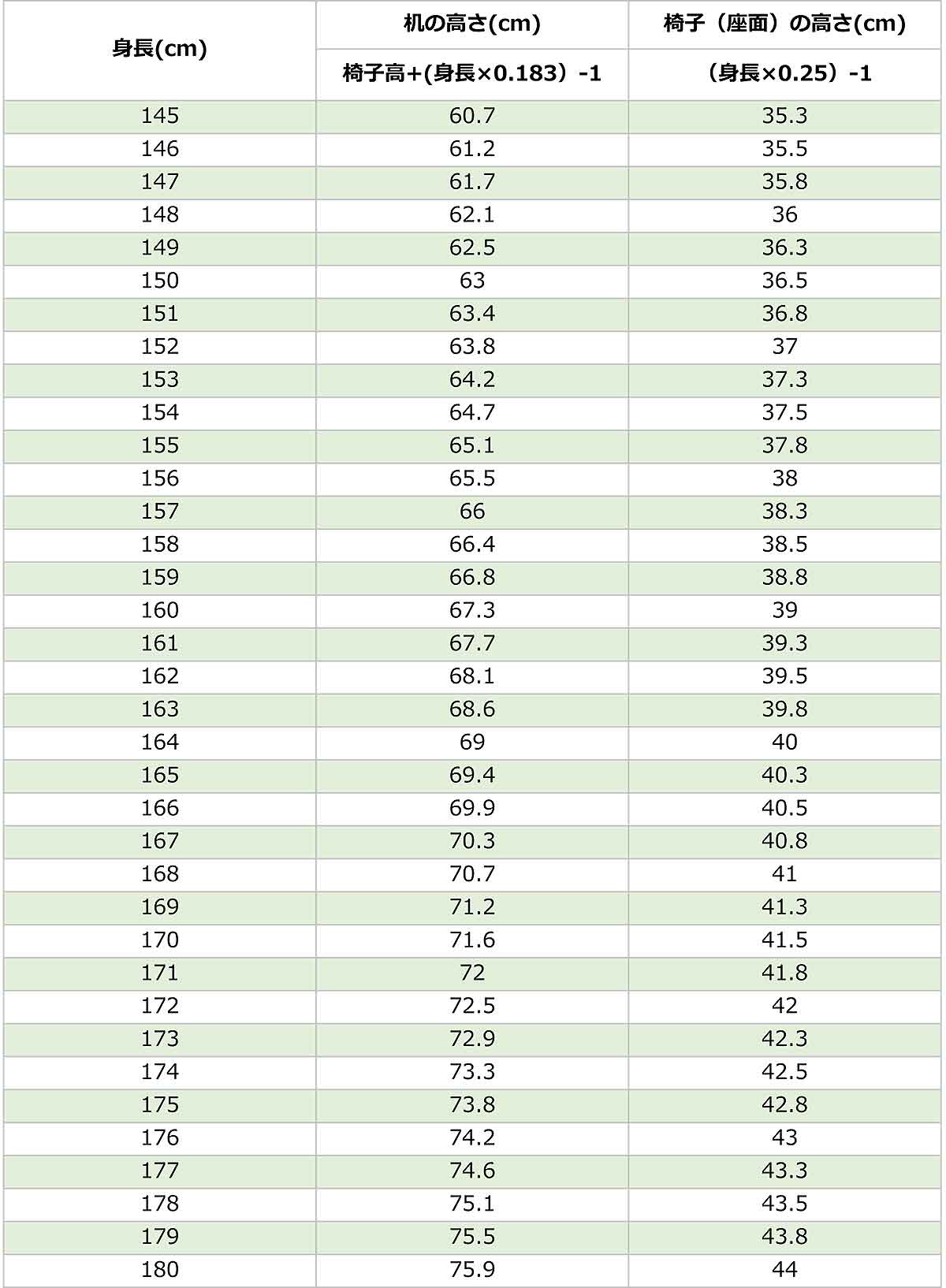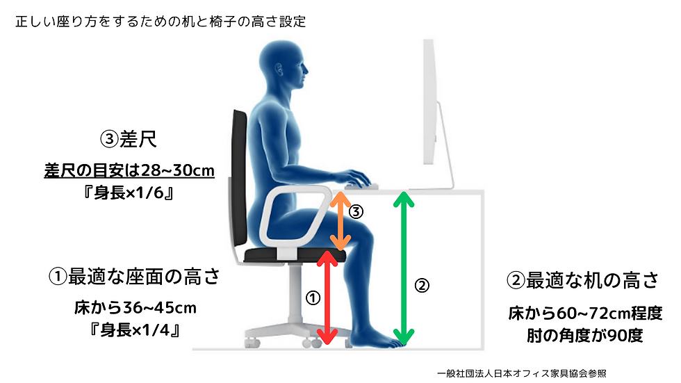 計算不要 身長別に机と椅子の高さを最適にする方法オフィス家具ペディア。