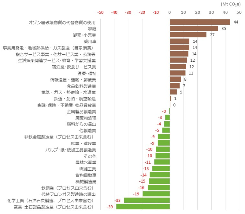 新規30部門別温室効果ガス排出量の比較 1三菱UFJリサーチ&コンサルティング。