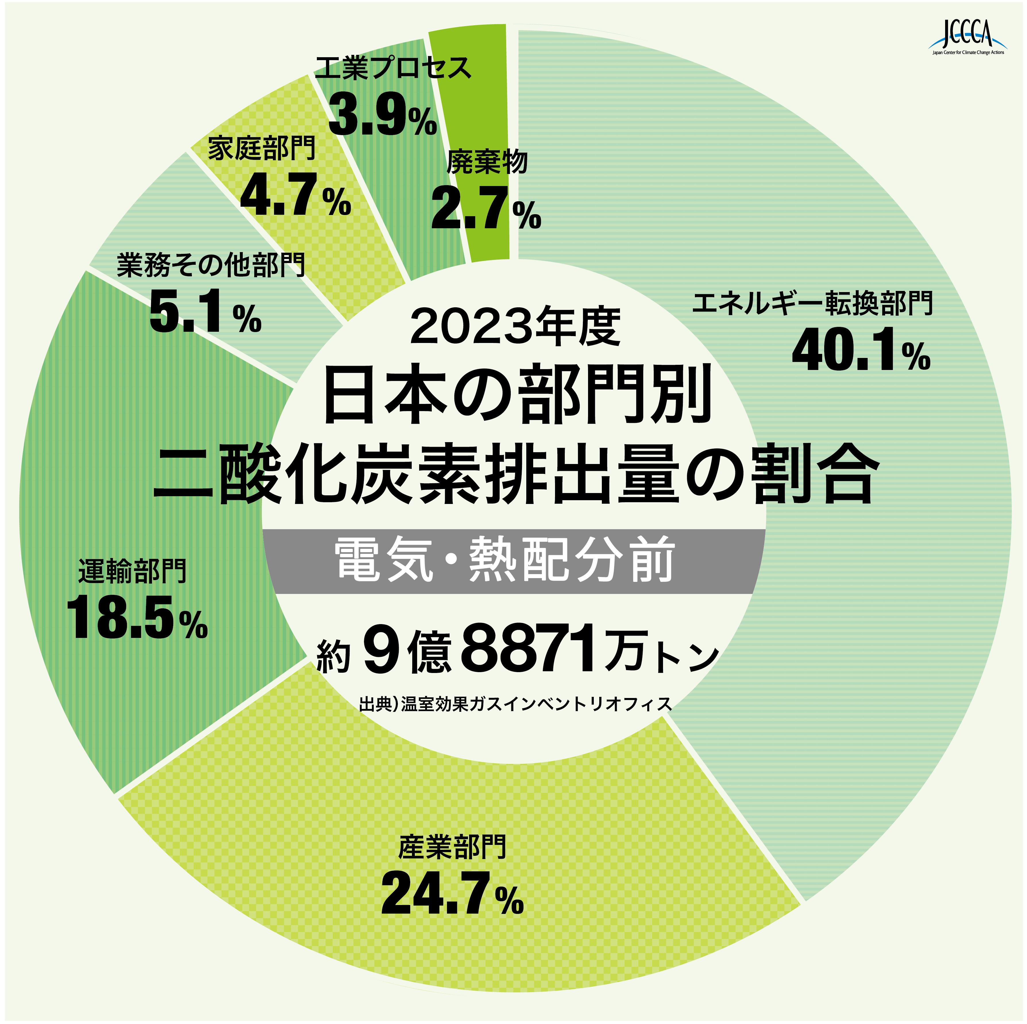 4-04 日本の部門別二酸化炭素排出量 2023年度JCCCA 全国地球温暖化防止活動推進センタ。