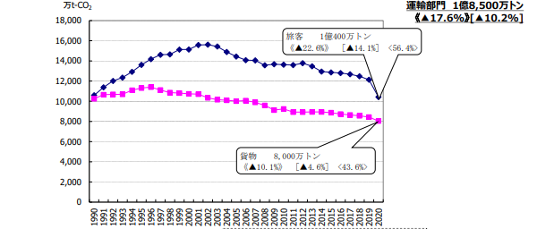 環境:運輸部門における二酸化炭素排出量 - 国土交通省。