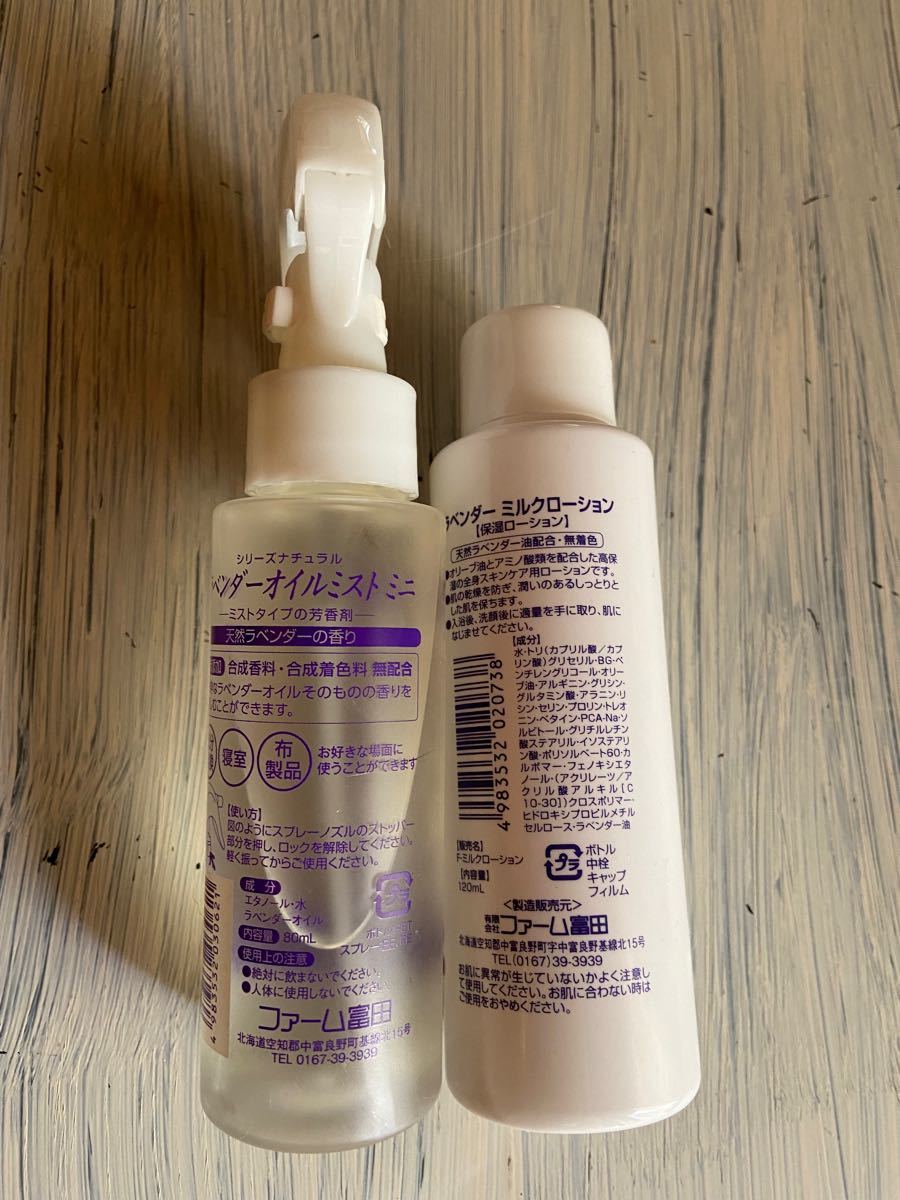 更に値下げ!ファーム富田ラベンダーオイルミストミニ&ミルクローション無添加天然ラベンダーの香りシリーズナチュラル。