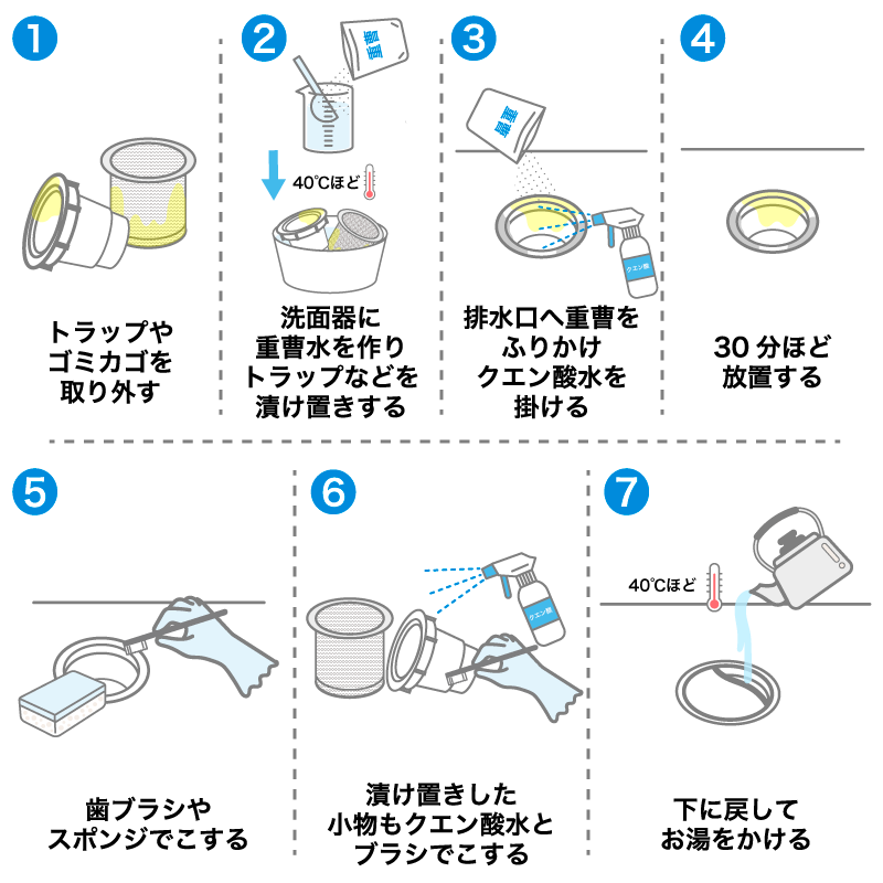洗面所の排水溝つまりには、重曹とクエン酸がオススメ! 効果的な掃除方法は?イーライフ水道サービス。