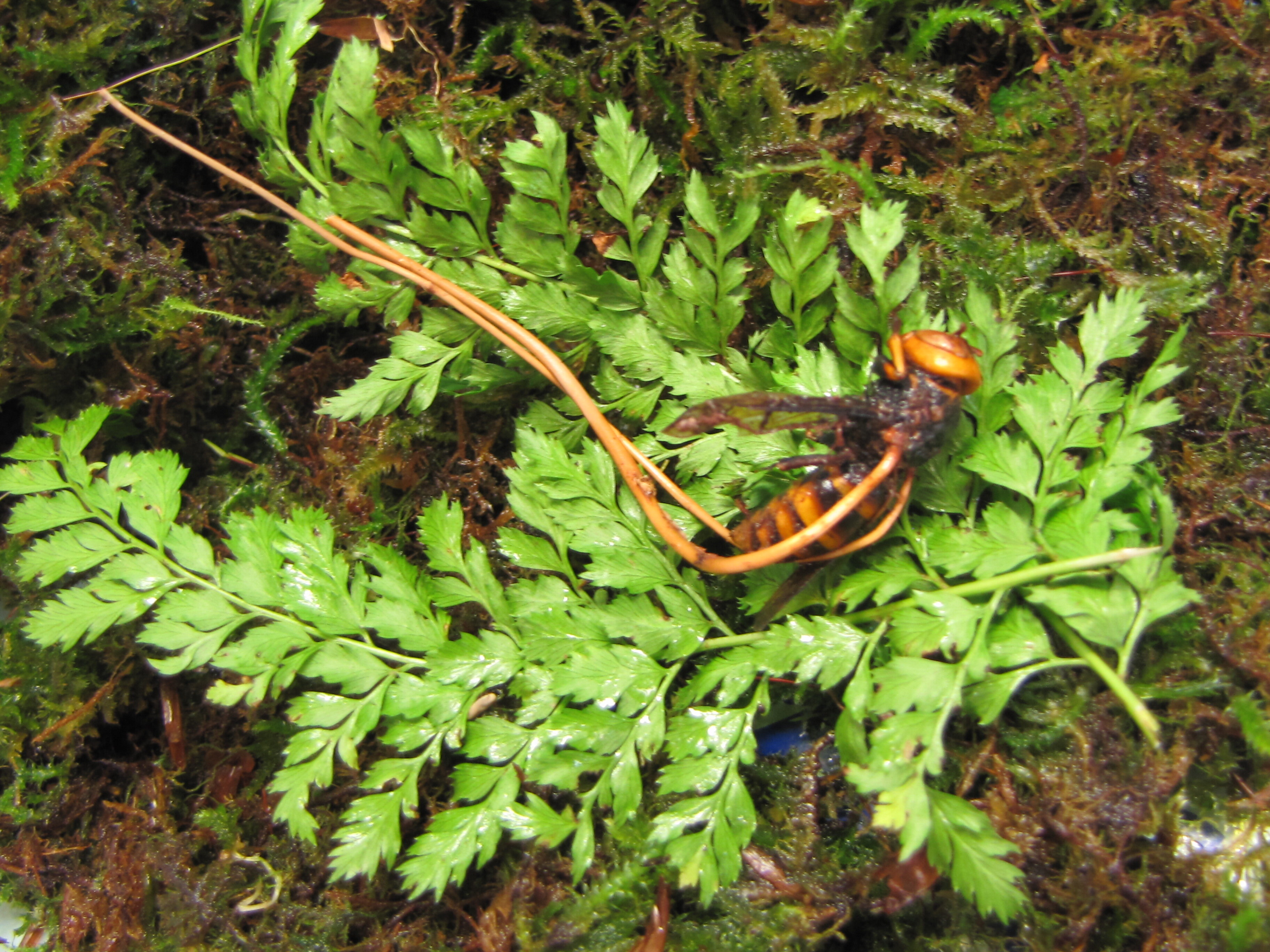 ヤンマタケ hymenostilbe odonataeミルンヤンマに寄生しているヤンマタケです。 冬虫夏草とは、元来中国の高山帯で観察されるコウモリガの仲間から生じるシネンシストウチュウカソウにつけられた名称です。それが漢方薬として中国から日本に伝えられて以来。