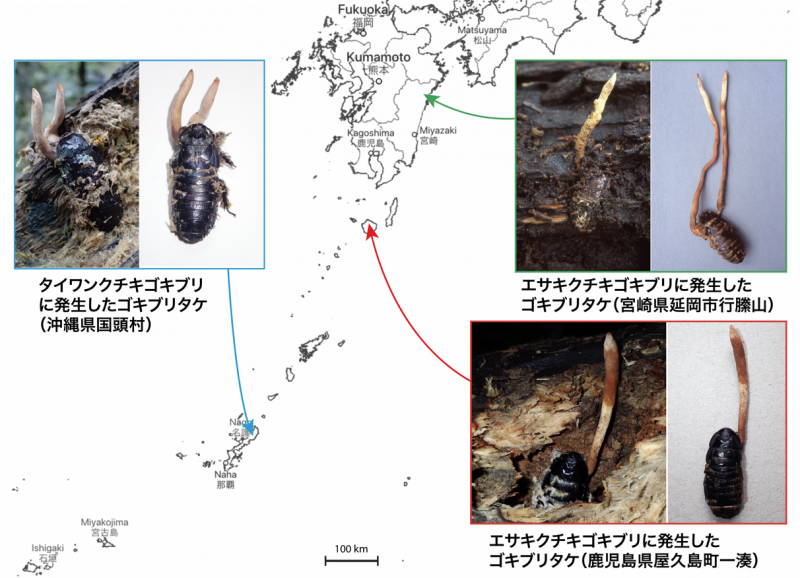 日本初のゴキブリに寄生する冬虫夏草の新種~世界的にも珍しいゴキブリタケはシロアリ寄生菌から進化した!?~琉球大学。