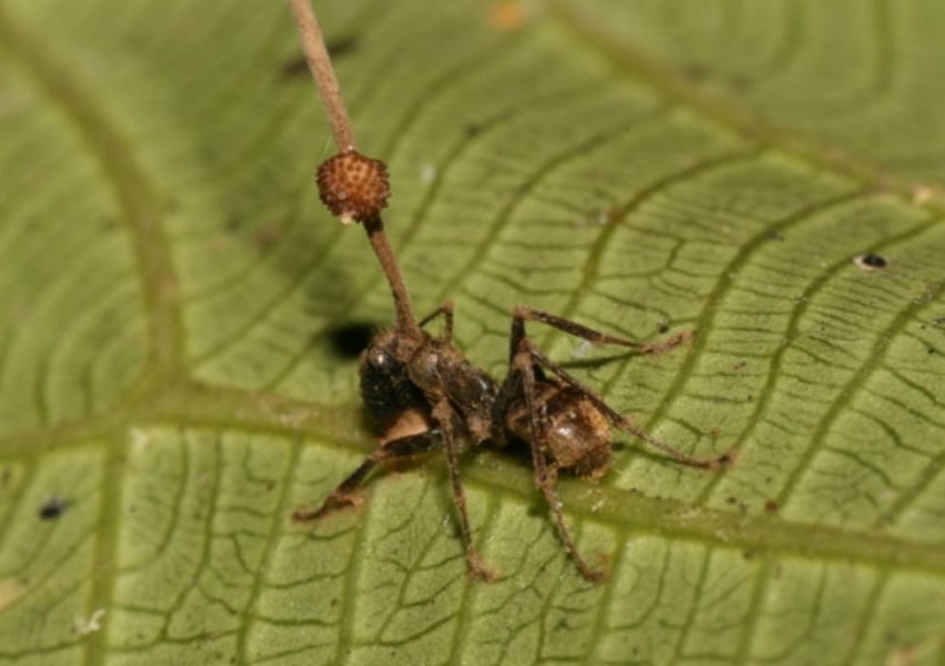 アリの頭部に寄生して発芽に有利な場所に移動させ死ぬ時間までも操作する恐怖のキノコ - GIGAZINE。