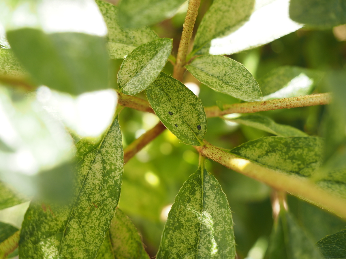 ツツジの葉に透明な羽の小さな虫が!? 葉裏に黒い斑点を見つけたらツツジグンバイという害虫に注意! - 蓼食う虫も好き好き。