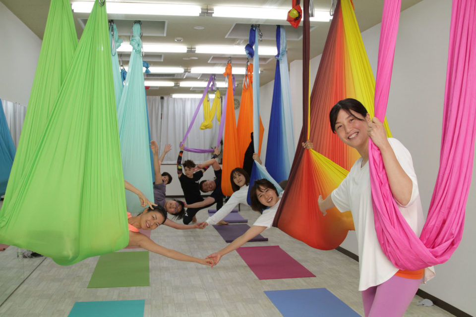 ハンモックヨガ エアリアルヨガ 空中ヨガ 低空フロースタジオフォーシーズンのニュースまいぷれ 各務原市・関市。