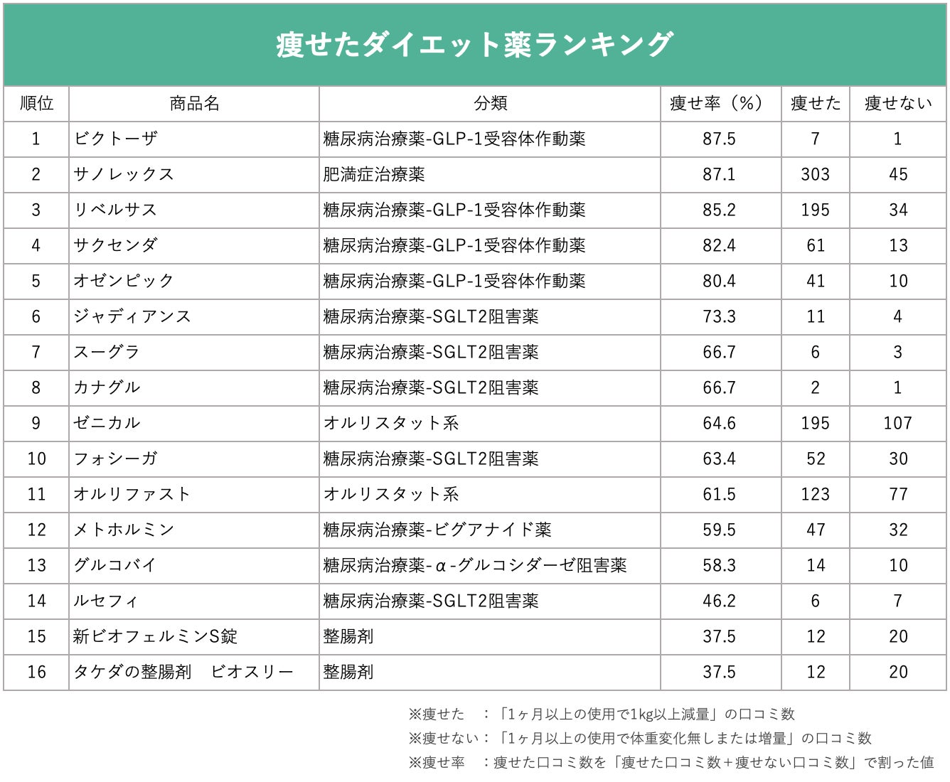 ダイエット薬の効果に関する実態調査 「痩せた」薬は16商品中、13商品。最も「痩せた」商品は今話題のGLP-1ダイエット。ダイエット カフェ株式会社のプレスリリース。