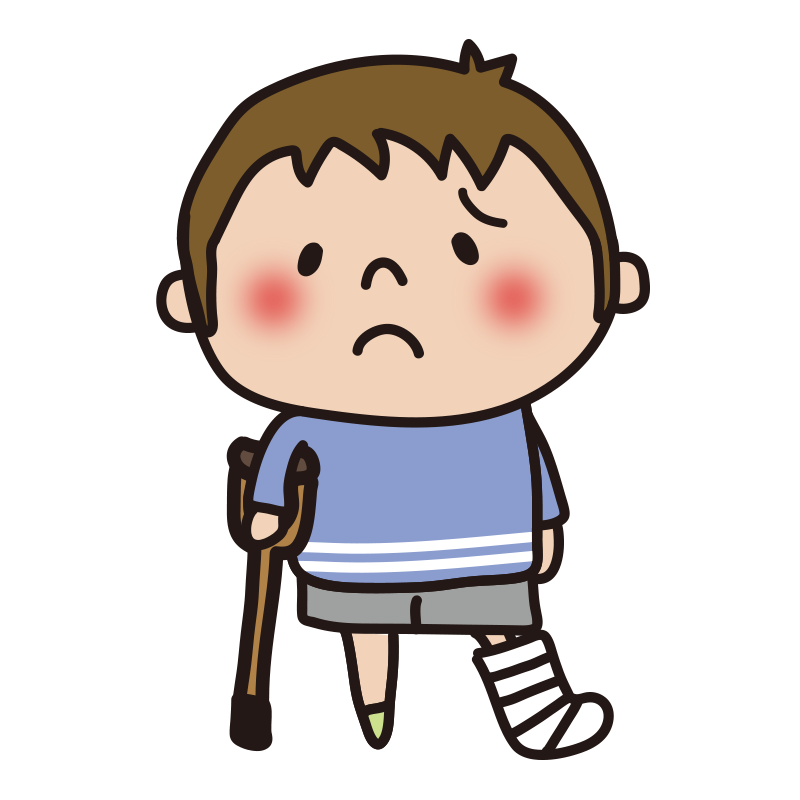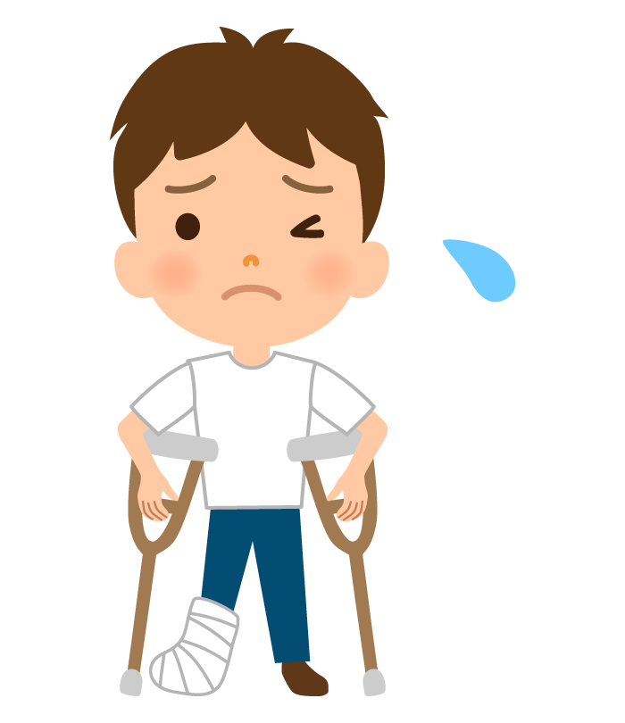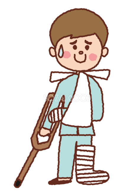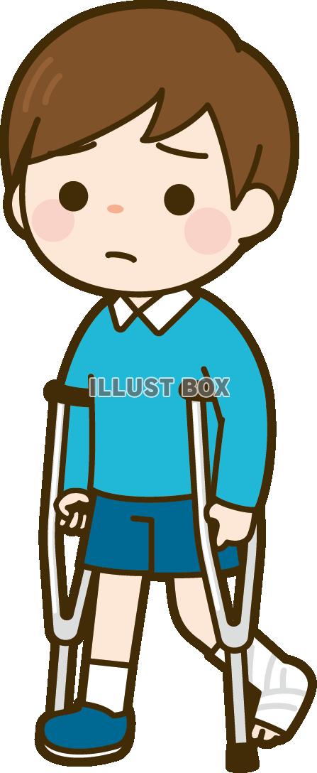 骨折して松葉杖をついている男の子のイラスト無料のフリー素材 イラストエイト。
