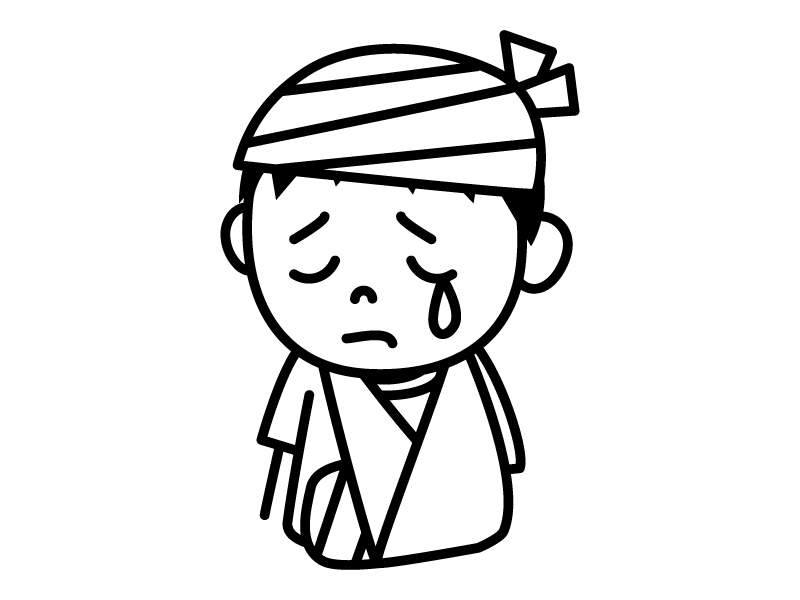 怪我・骨折の白黒イラストかわいい無料の白黒イラスト モノぽっと。