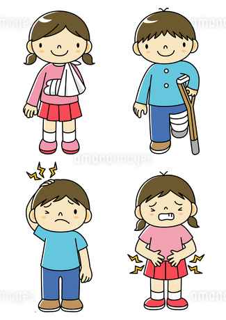 腹痛と頭痛の子供と骨折と脱臼の子供のイラスト素材FYI01693866ストックフォトの Qlean Market キュリンマーケット。
