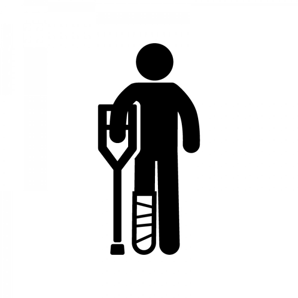 骨折した人ピクトグラムイラストのフリー素材イラストイメージ。