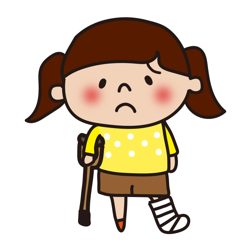 足を骨折した子供 女の子 の無料 フリー イラストかわいい手描きの無料素材「てがきっず」保育園・小学校・介護施設にぴったりのフリー素材イラスト。