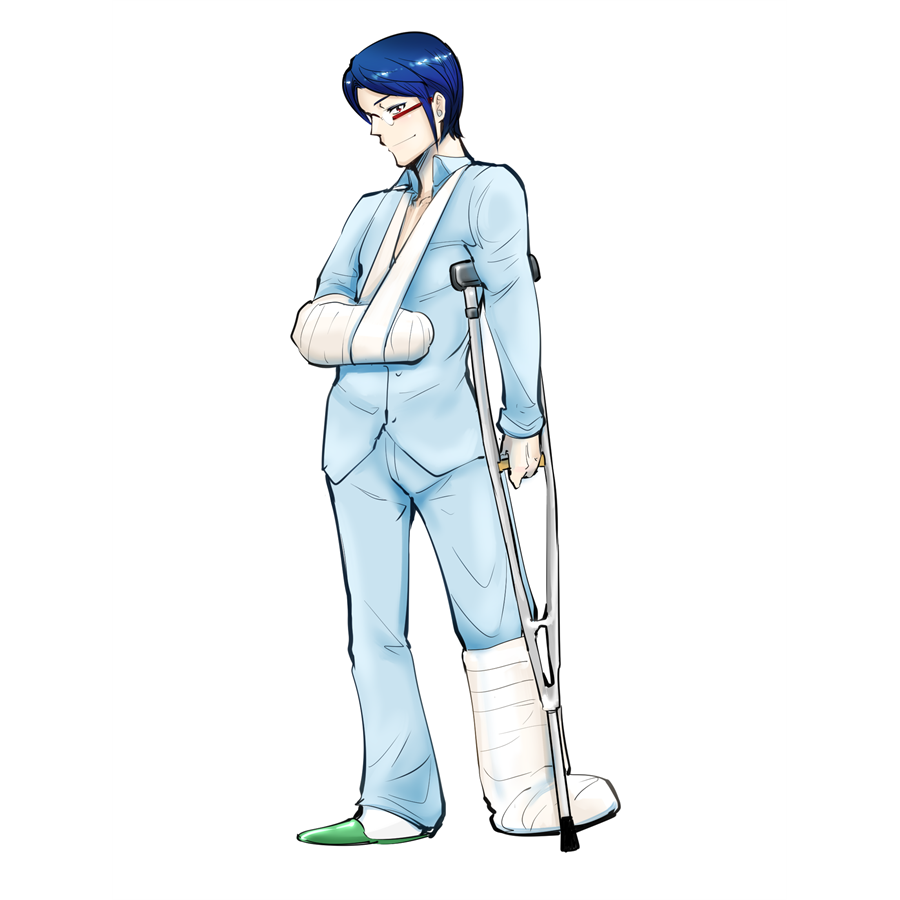 骨折した男性のイラスト無料で使えるフリーな「らくがき素材」。