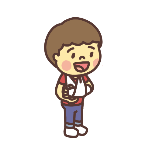 腕を骨折した子供 男の子 の無料 フリー イラストかわいい手描きの無料素材「てがきっず」保育園・小学校・介護施設にぴったりのフリー素材イラスト。