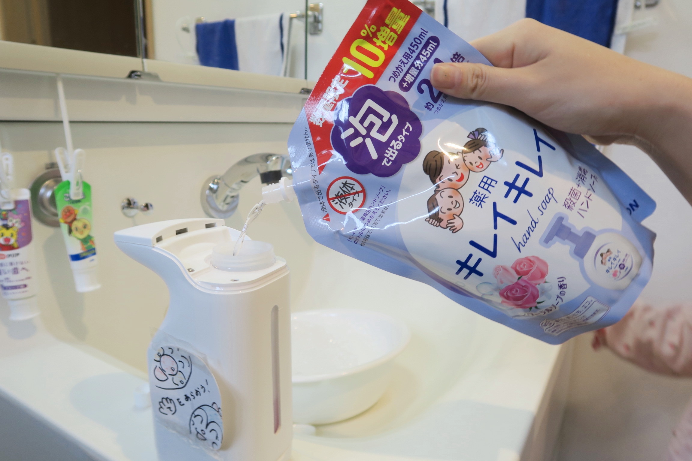 キレイキレイ泡ハンドソープ自動ディスペンサーは詰替えが便利?!ミューズと比較してコスパが良い感じ!りけろぐ。