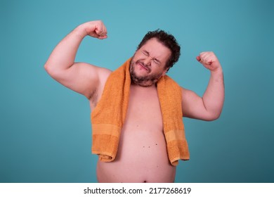 変なデブ男がシャワーで体を洗っている。写真素材2177268619Shutterstock。