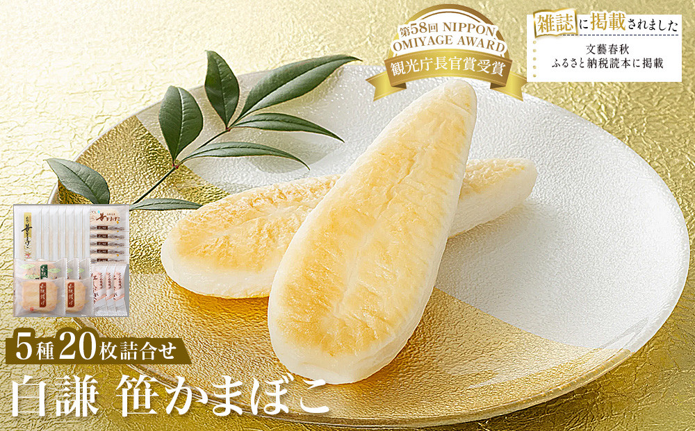 白謙かまぼこ店 笹かまぼこ 5種20枚詰合せセット 老舗 白謙 笹かまぼこ 蒲鉾 笹かま しらけん かまぼこ 詰め合わせ 人気 練り物 極上笹かま野菜揚げ 揚げ蒲鉾 チーズ笹 家庭用 蒲鉾セット お取り寄せ 贈り物 練り物 つまみ おかず NIPPON OMIYAGE AWARD 第58回観光庁。