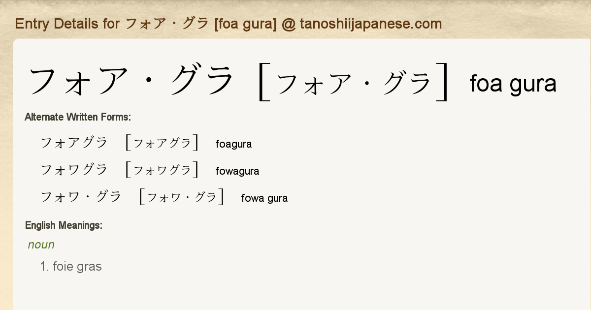 Entry Details for フォア・グラfoa gura- Tanoshii Japanese。