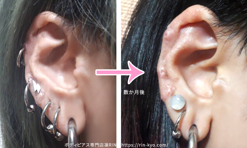 軟骨ピアスの肉芽と腫れ、閉じるべきかピアス穴あけ 耳のピアス の治療方法・適応。