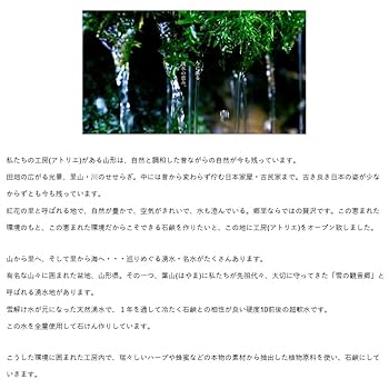 Amazon.co.jp: 和紅茶湧水石鹸 原料は水・油・素材のみ 超軟水「雪の観音郷」の 湧水から生まれるコールドプロセス石鹸引き算の美学を追及した自然派石鹸 : ホーム&キッチン。