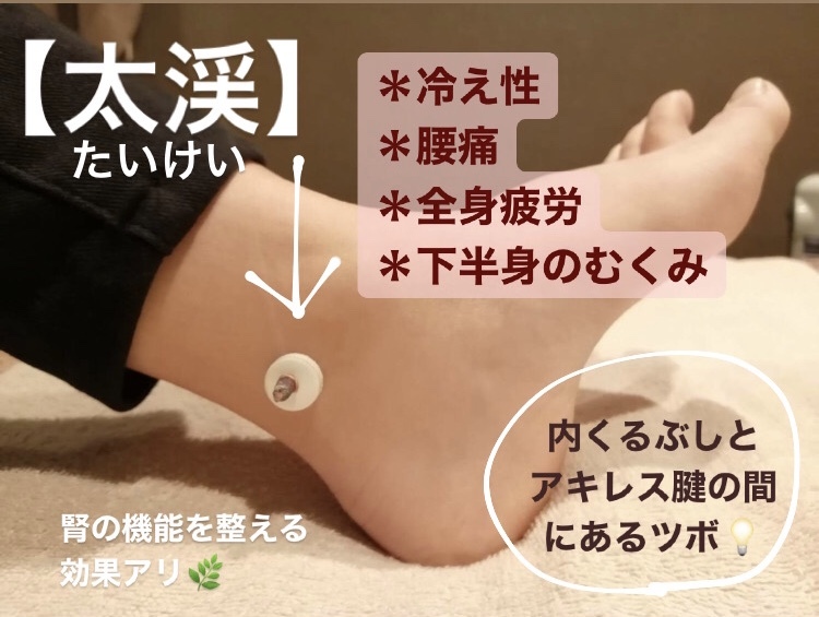 体を温め、老化対策に効果あるツボ 『 太渓 たいけい 』麻生区,多摩区,宮前区,高津区,狛江市,在宅・訪問リハビリマッサージ。
