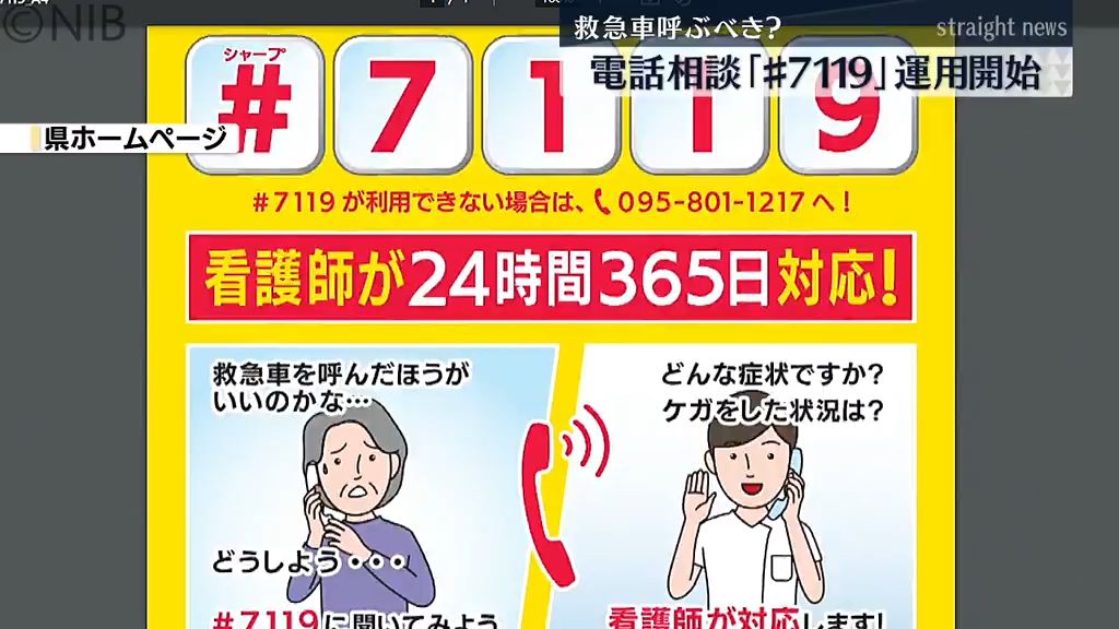 こんな場合は “救急車” 呼ぶべき?」 7119の運用開始 看護師が24時間体制で相談受付 長崎2024年7月31日掲載 NIB NEWS NNN。