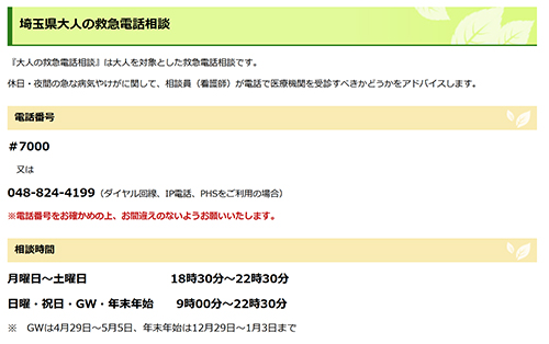 救急車を呼ぶべきかどうか」悩んだときには「 7119」へ 子どもの場合は「 8000」へ連絡して相談する – ニッポン放送 NEWS ONLINE。