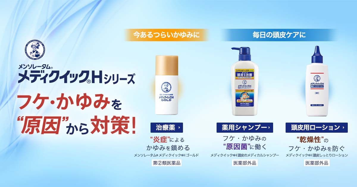 メディクイック®H、頭のかゆみ・フケに原因から対策ロート製薬: 商品情報サイト。