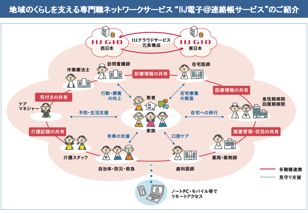 地域のくらしを支える専門職ネットワークサービス 「IIJ電子@連絡帳サービス」ジチタイワークス民間サービス比較。