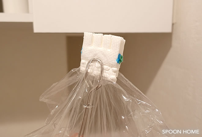 流せるトイレブラシと無印良品・柄つきスポンジの組み合わせが便利。替えブラシの収納実例SPOON HOME。