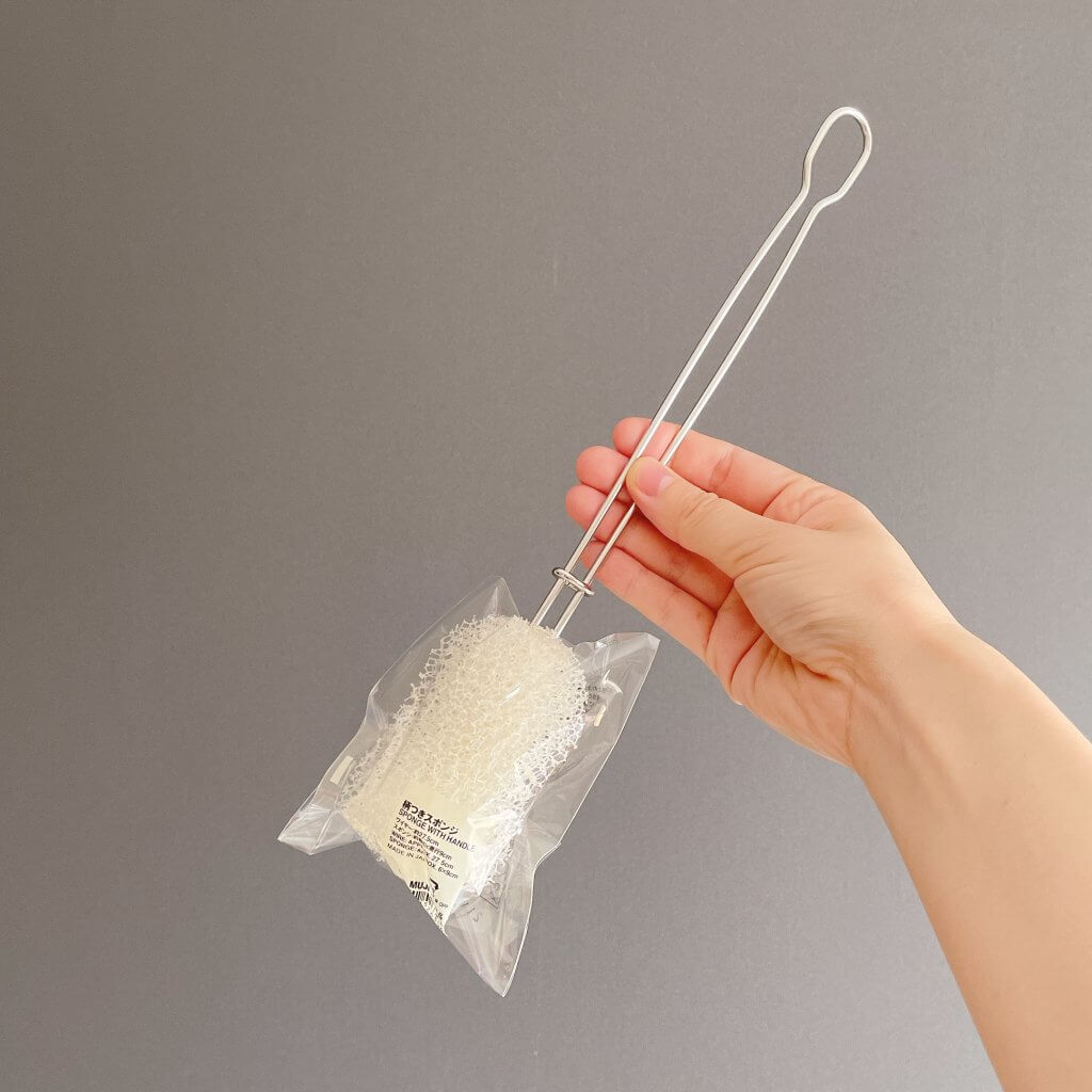無印良品 なくなったら困る!水筒を洗うのに便利な「柄つきスポンジ」まさかの使い方が便利すぎた! 購入レビュー。