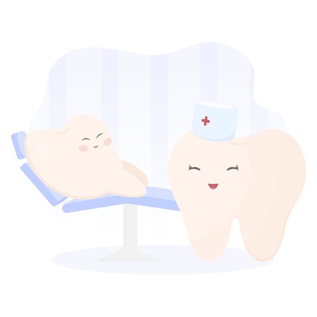 小児歯科で診察。文字医者の歯と子供の乳歯。かわいいベクター イラストPremiumベクトル素材。