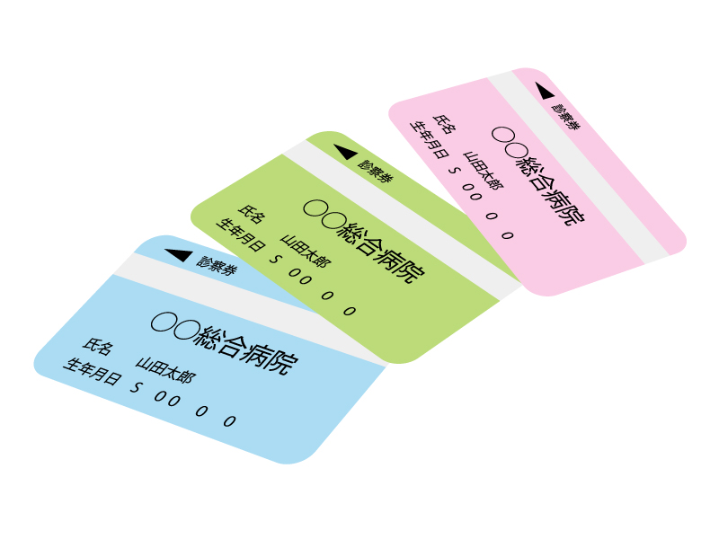 3枚並んだ診察券のイラストイラスト無料・かわいいテンプレート。