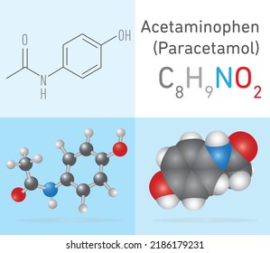 アセトアミノフェン パラセタモールC8H9NO2構造化学式と分子モデル。化学教育のベクターイラスト」のベクター画像素材 ロイヤリティフリー1698090610Shutterstock。