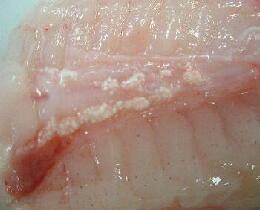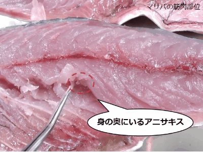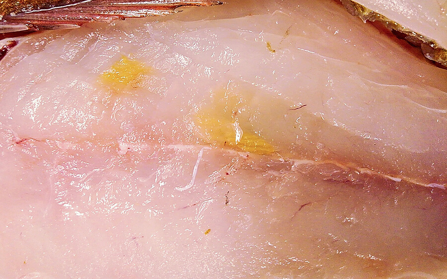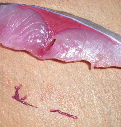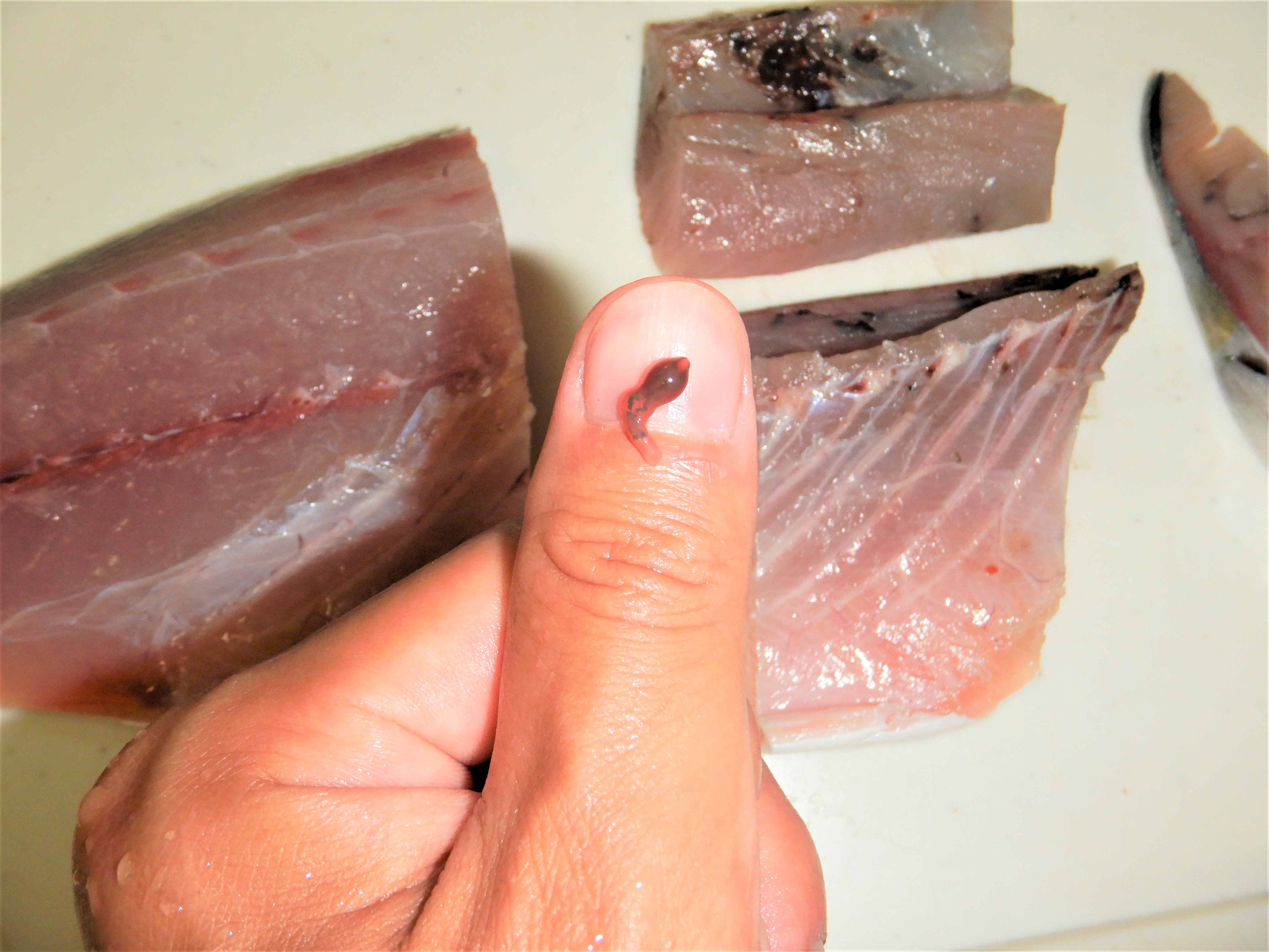 海水魚に潜む寄生虫のご紹介。 アニサキス、テンタクラリア、ブリ糸状虫。釣太郎ホームページ。