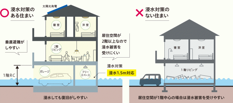 水害対策を考える 4-1-3 浸水の予防・人命を守る家づくり。