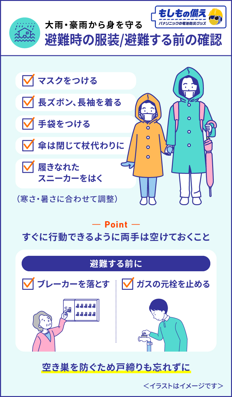 大雨・豪雨への備え 事前の対策・行動電池・モバイルバッテリー・充電器総合Panasonic。