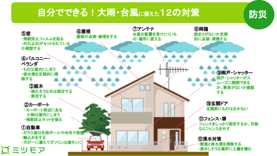 台風・大雨前の対策。家の暴風・洪水対策は余裕をもって準備しようmoshimo ストック。