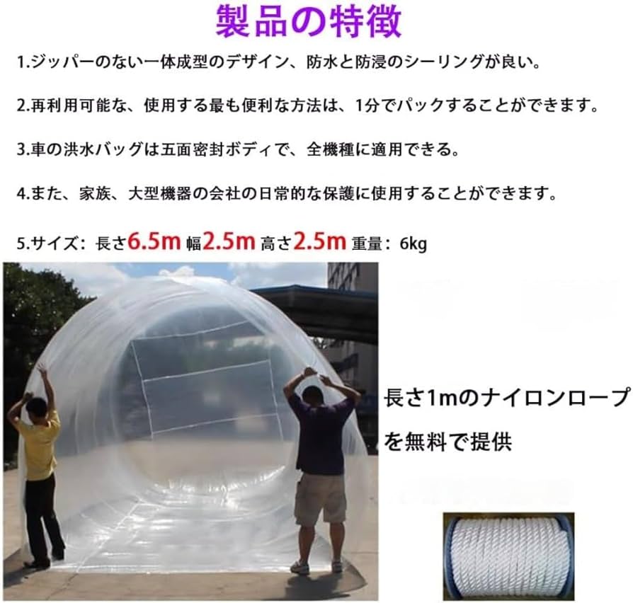 Amazon車用浸水対策袋 浸水防止カバー 車用防水カバー 600×250×250cm 大雨対策 浸水被害対策 ゲリラ豪雨 防雨 防塵袋 浸水 被害対策 防災用品緊急対応セット車&バイク。