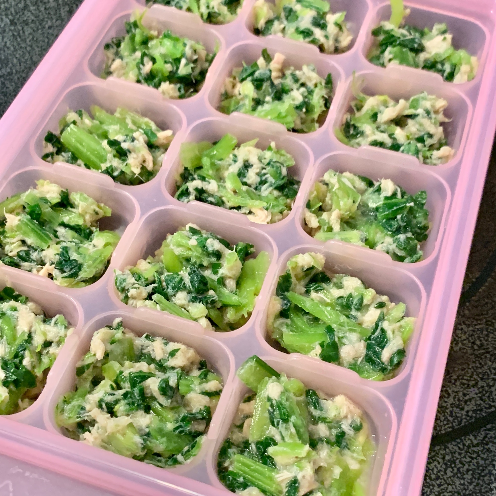 小松菜とツナのナムル 鉄分強化メニュー 離乳食後期~。