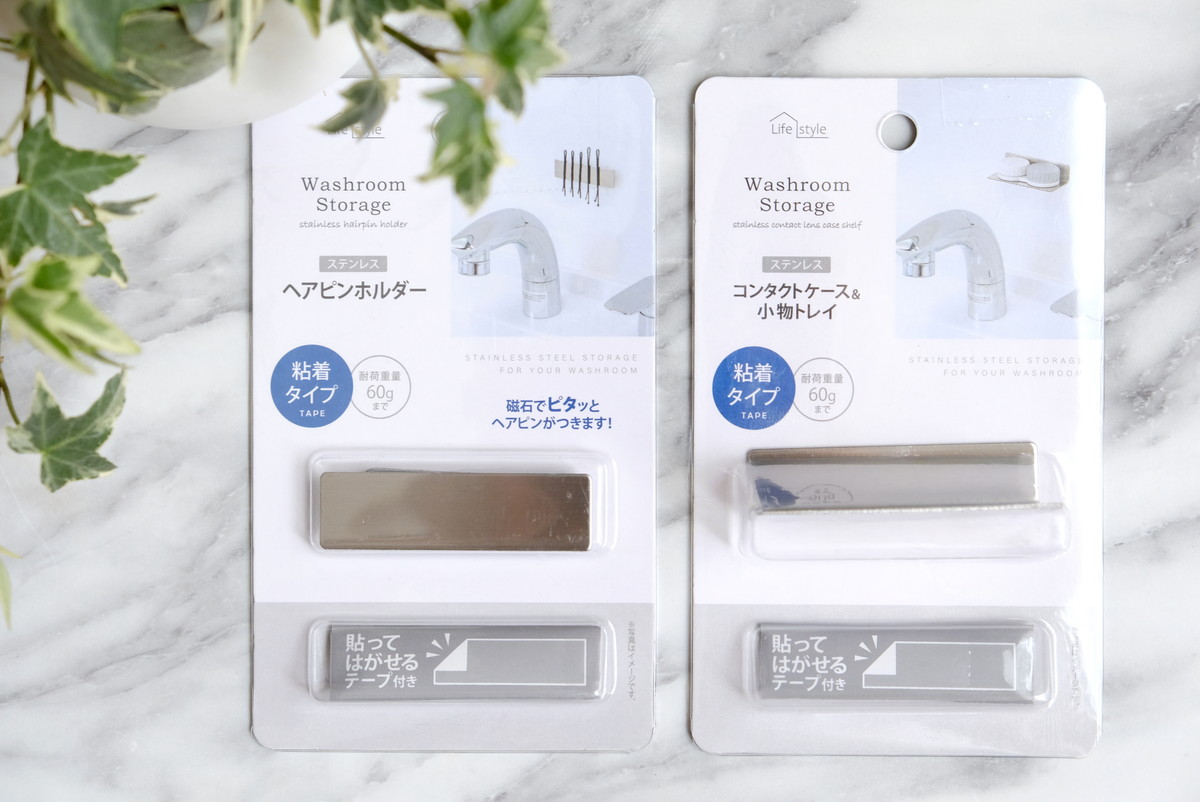 セリア*高見えステンレスアイテム2つ!洗面所の浮かせる収納がお手軽に♪ : *ゆるーくおうちのことを考えるブログ* Powered byライブドアブログ。