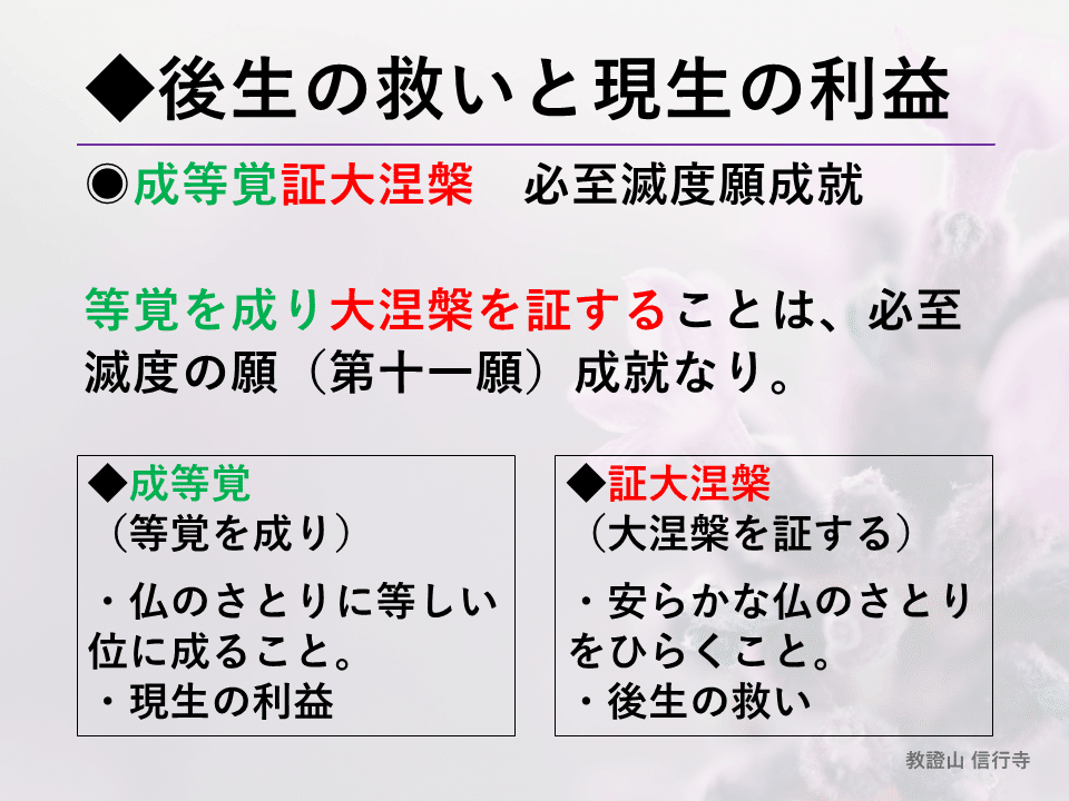 浄土真宗 正信偈を学ぶ 第35回_成等覚証大涅槃 必至滅度願成就_生きる意味信行寺 福岡県糟屋郡にある浄土真宗本願寺派のお寺。