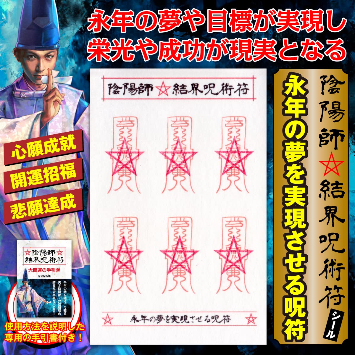 Amazon.co.jp:永年の夢を実現させる呪符 陰陽師 結界呪術符 シール 心願成就 開運招福 悲願達成 護符 お守り 高級和紙製 ステッカー1シートに呪符6枚 吉祥の会 : おもちゃ。