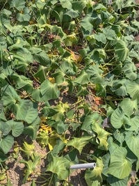 さつまいもに枯れが出てきました。 全体から見るとほんの一部ですが、さつまいもが枯れるというのは初めて見ました。 枯れてるのは、ふくむらさきという品種です。さつまいもは、干ばつを受けるとたいてい葉が垂れてくるのですが、ふくむらさきという品種はあまり葉が。