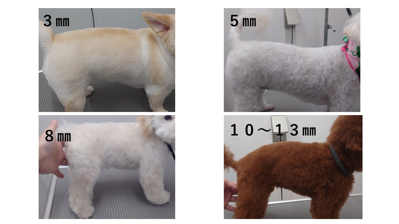 トリミング:バリカンの長さのラインナップ - 博多犬猫医療センタ。