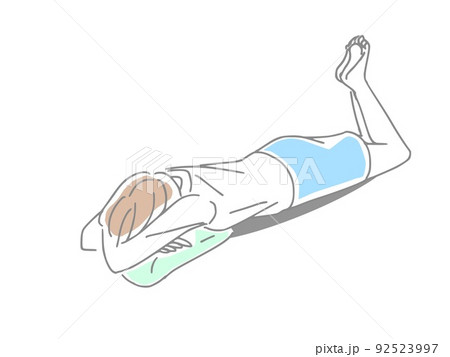 うつ伏せで足を上げて爆睡する女性のイラスト素材92523997- PIXTA。