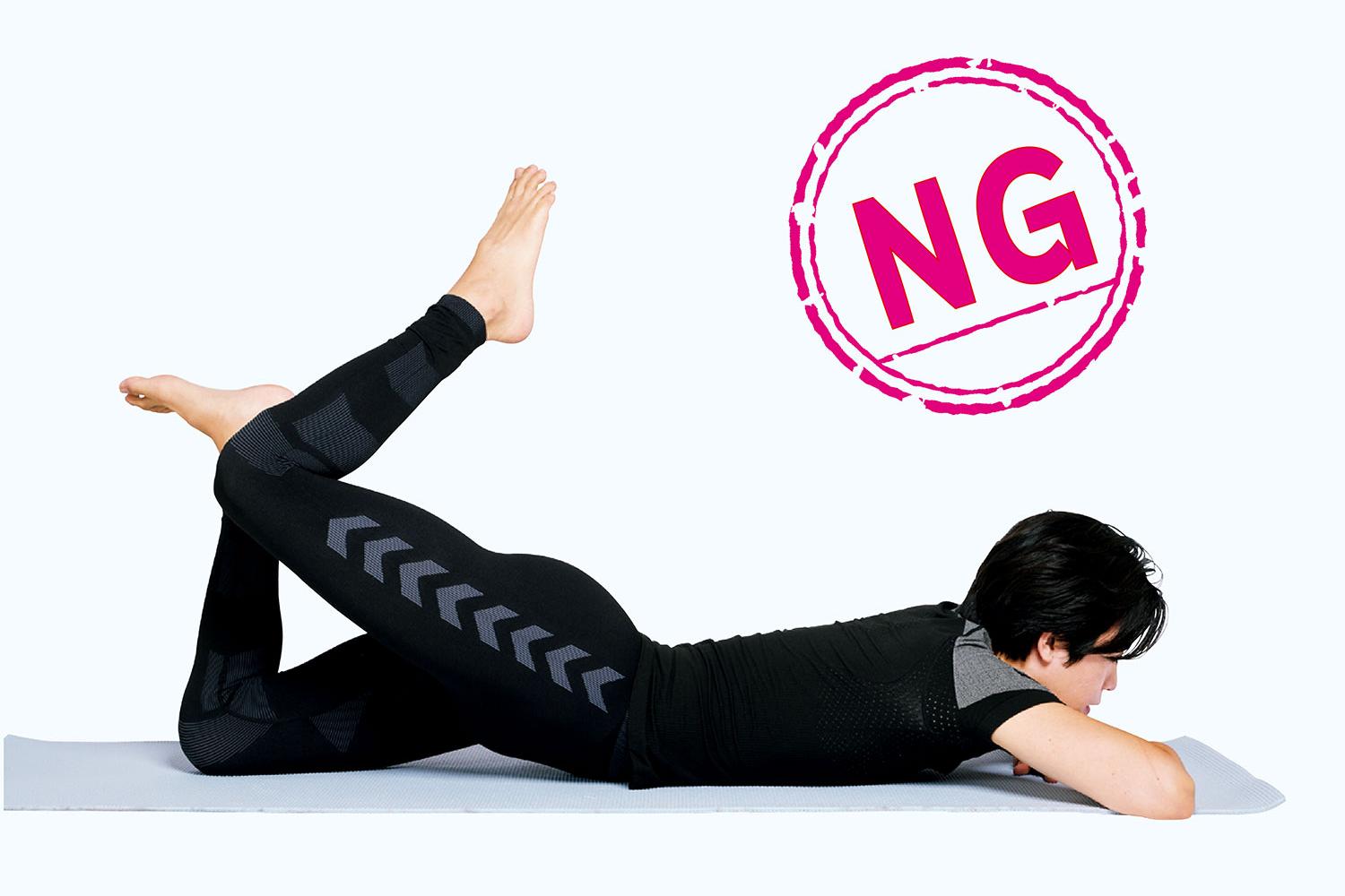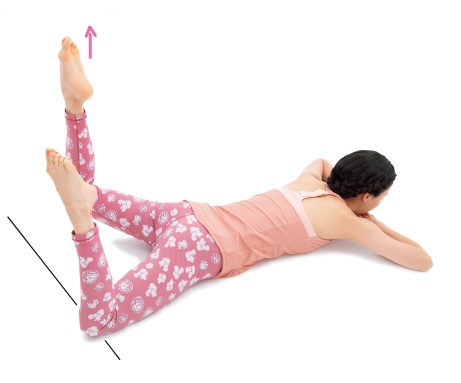 気になるヒップを上向き美尻に!「うつぶせで足を上げるポーズ」 - 朝時間.jp。